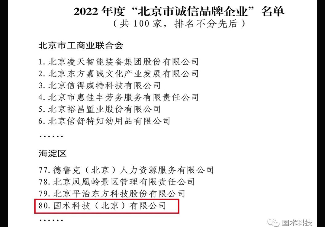 喜訊!國(guó)術(shù)科技被命名為“北京市誠(chéng)信品牌企業(yè)”