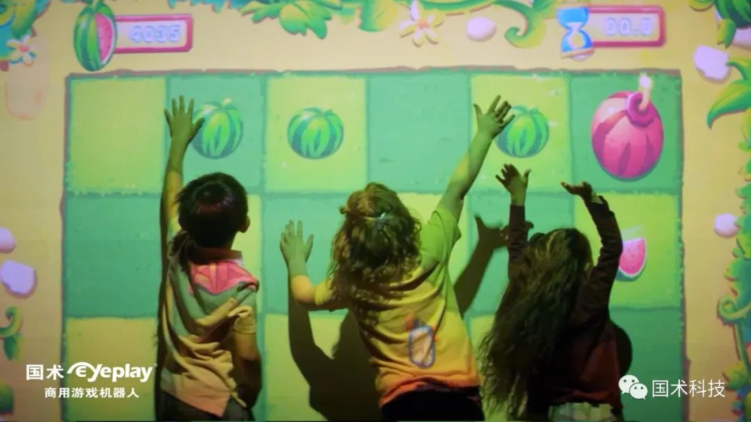 確實(shí),現(xiàn)在的孩子從小就生活在手機(jī)、iPad等各種電子設(shè)備的轟炸下,對(duì)游戲的滿意度值已經(jīng)提高。國(guó)術(shù)Eyeplay商用游戲機(jī)器人之所以能俘獲“神獸”們的心,是因?yàn)樗捎靡陨蓄I(lǐng)先的交互投影技術(shù),打造一種全新的沉浸式互動(dòng)游戲體驗(yàn)?!吧瘾F”們可以看到,類似于iPad游戲里的虛擬場(chǎng)景,放大后呈現(xiàn)在地面、桌面和墻面,視覺(jué)效果非常炫酷,再加上小伙伴們可以一起“動(dòng)手動(dòng)腳”嗨翻全場(chǎng),比一個(gè)人在家玩電子游戲有趣多了!