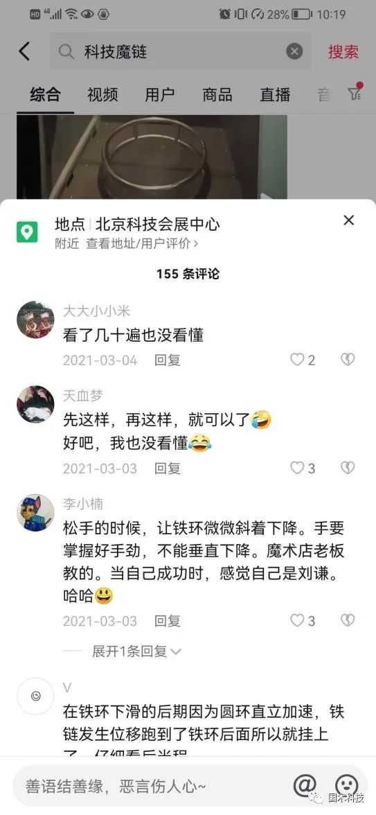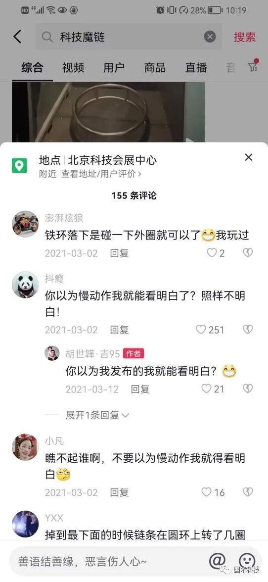 一名觀眾將拍攝的“科技魔鏈”視頻進行慢動作效果處理后發(fā)布在抖音平臺上,獲得近3000人點贊,評論區(qū)也非常熱鬧。