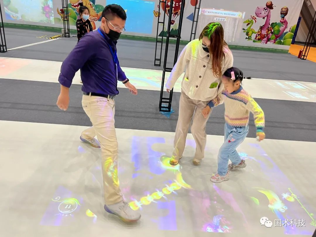 連日來,賽未來“趣”樂園人流不斷,成為孩子們的歡樂海洋。賽未來“趣”樂園由國術(shù)Eyeplay商用游戲機(jī)器人地面、墻面和桌面等多款交互產(chǎn)品打造而成。孩子們沉浸其中,通過用手和腳來參與互動(dòng),盡情玩耍兒,暢享互動(dòng)投影游戲的樂趣。