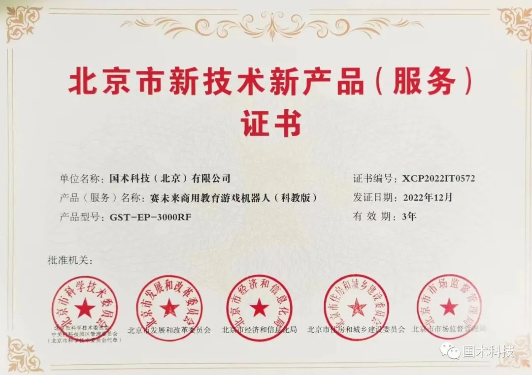 近日,北京市科學(xué)技術(shù)委員會、中關(guān)村科技園區(qū)管理委員會等5部門公示了第十七批北京市新技術(shù)新產(chǎn)品(服務(wù))名單,國術(shù)科技自主研發(fā)的科普產(chǎn)品“賽未來商用教育游戲機(jī)器人(科教版)”和“賽未來智能升降燈球”被認(rèn)定為“北京市新技術(shù)新產(chǎn)品(服務(wù))”。