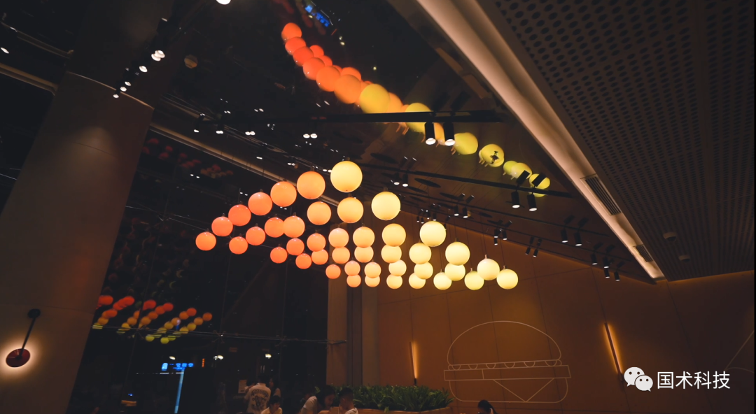 安裝于杭州西湖文化廣場麥當(dāng)勞餐廳里的“賽未來智能升降燈球”