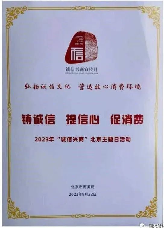近日,由商務(wù)部市場體系建設(shè)司、北京市商務(wù)局共同主辦的2023年全國“誠信興商”北京主題日活動(dòng)成功舉辦?;顒?dòng)公布了“誠信興商倡議企業(yè)”217家、“誠信興商典型案例”16個(gè)。國術(shù)科技入選2023年“誠信興商倡議企業(yè)”。