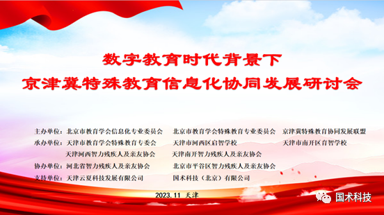 2023 年11 月 16 日至18 日,由北京市教育學(xué)會信息化專業(yè)委員會、北京市教育學(xué)會特殊教育專業(yè)委員會、京津冀特殊教育協(xié)同發(fā)展聯(lián)盟共同主辦的“數(shù)字教育時代背景下京津冀特殊教育信息化協(xié)同發(fā)展研討會”在天津市成功舉辦。會議旨在推動京津冀地區(qū)特殊教育的信息化發(fā)展,加強(qiáng)三地之間的協(xié)同合作,共享優(yōu)質(zhì)教育資源,提高特殊教育的質(zhì)量和水平。國術(shù)科技受邀參加了此次研討會。