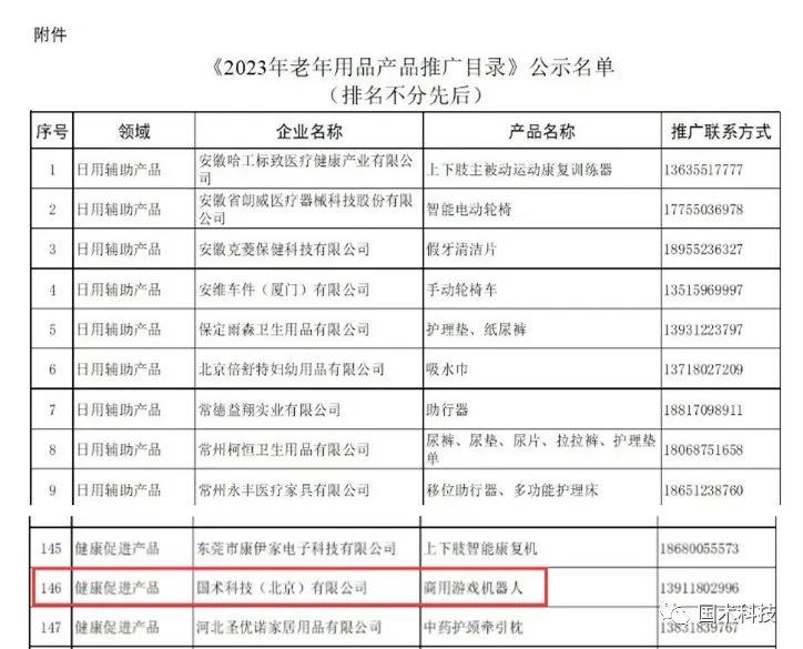 近日,工業(yè)和信息化部發(fā)布了《2023年老年用品產(chǎn)品推廣目錄》。此次入選《2023年老年用品產(chǎn)品推廣目錄》的產(chǎn)品范圍包括老年服裝服飾、日用輔助產(chǎn)品、養(yǎng)老照護(hù)產(chǎn)品、健康促進(jìn)產(chǎn)品、適老化家居產(chǎn)品等6大領(lǐng)域20個(gè)品類,共計(jì)263款。其中國術(shù)科技的商用游戲機(jī)器人作為健康促進(jìn)產(chǎn)品列入了推廣目錄。