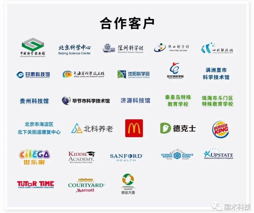 2017年開始國術科技實施“同心多元化”戰(zhàn)略,即以科普為核心,研發(fā)科普產(chǎn)品,拓展在不同行業(yè)場景中的應用。國術科技的交互投影科普游戲機器人產(chǎn)品就是一個科普和不同行業(yè)融合發(fā)展,“跳出科普做科普”的成功案例。該產(chǎn)品不僅廣泛應用于中國科學技術館、北京科學中心、深圳科學館等全國數(shù)十家知名科普場館,還廣泛應用于連鎖餐飲、兒童教育、特殊教育、智慧養(yǎng)老等不同領域,包括麥當勞、秦皇島特殊教育學校、中科院幼兒園、北科養(yǎng)老科普展廳、NBA中心等單位。在中國大陸地區(qū),已有近2000家麥當勞餐廳安裝了該科普產(chǎn)品,相當于在全國建設了2000家交互投影技術科普體驗展示廳,每年服務觀眾(兒童)超過1億人次。