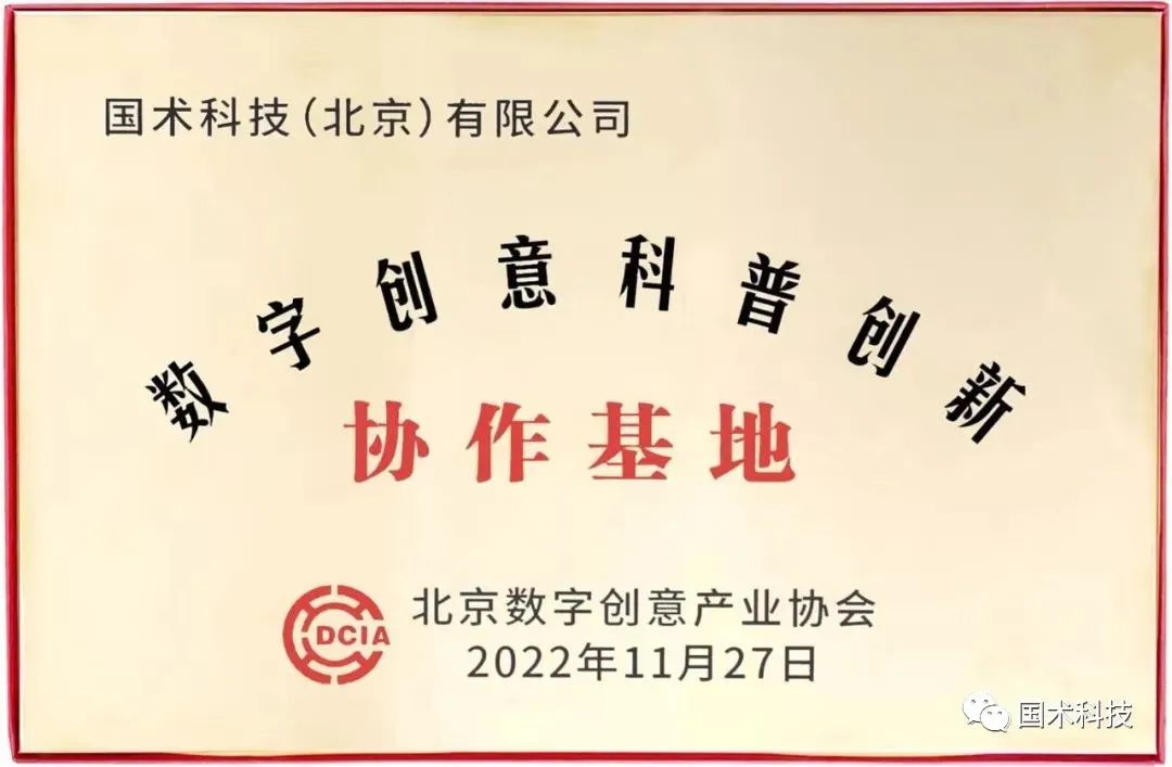 國術科技被北京市數(shù)字創(chuàng)意產(chǎn)業(yè)協(xié)會授予“數(shù)字創(chuàng)意科普創(chuàng)新協(xié)作基地”。