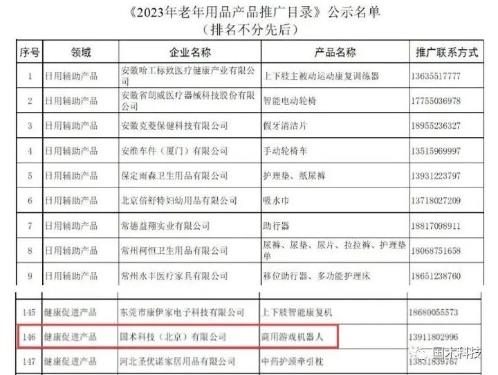 國術科技的商用游戲機器人入選工信部《2023年老年用品產(chǎn)品推廣目錄》。