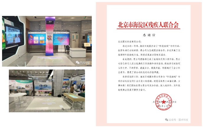 2023年,國術(shù)科技積極響應(yīng)海淀區(qū)殘聯(lián)發(fā)起的“科技助殘”專項行動,攜“賽未來智能教育機器人”“奧比沙桌教育機器人”等多款創(chuàng)新科技助殘產(chǎn)品,參與了“第33個全國助殘日”和“北京市第七次全國殘疾預(yù)防日”等主題活動?;顒咏Y(jié)束后,國術(shù)科技收到了海淀區(qū)殘聯(lián)的感謝信,信中充分肯定了國術(shù)科技為“科技助殘”專項行動所做的貢獻。
