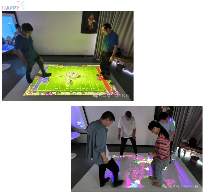 比賽分為上下兩場(chǎng),包括“叢林軼事”團(tuán)隊(duì)?wèi)?zhàn)和“沙漠之戰(zhàn)”個(gè)人戰(zhàn)。別看地面互動(dòng)投影游戲只需要參與者踩踩踩,要想取勝可是需要花費(fèi)一番心思的呢!尤其是團(tuán)隊(duì)?wèi)?zhàn),不僅需要隊(duì)員反應(yīng)速度快,還需要隊(duì)員之間默契配合。
