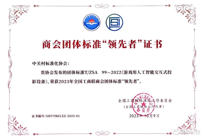國(guó)術(shù)科技借力“一帶一路”倡議,堅(jiān)持走“專精特新”的高質(zhì)量發(fā)展之路,成為中國(guó)科普研發(fā)和智造領(lǐng)域的代表性企業(yè)之一。基于多年的生產(chǎn)管理實(shí)踐,國(guó)術(shù)科技牽頭制定了《游戲用人工智能交互式投影設(shè)備》團(tuán)體標(biāo)準(zhǔn)。該標(biāo)準(zhǔn)有效解決了科普行業(yè)產(chǎn)品普遍存在的“非標(biāo)”和“定制”的痛點(diǎn)和難點(diǎn)問(wèn)題,具有較大市場(chǎng)推廣價(jià)值,填補(bǔ)了國(guó)內(nèi)外該類產(chǎn)品標(biāo)準(zhǔn)的空白。2021年12月31日,該標(biāo)準(zhǔn)被中關(guān)村標(biāo)準(zhǔn)化協(xié)會(huì)認(rèn)定為“中關(guān)村標(biāo)準(zhǔn)”團(tuán)體標(biāo)準(zhǔn),2023年10月被評(píng)為“2023年全國(guó)工商聯(lián)商會(huì)團(tuán)體標(biāo)準(zhǔn)‘領(lǐng)先者’”。