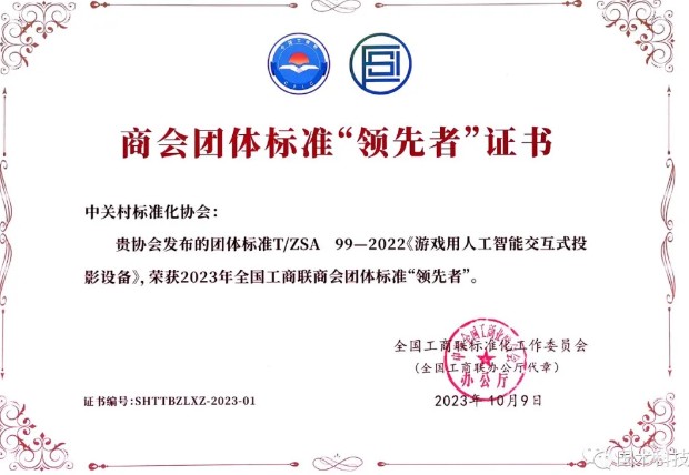 2021年12月31日,國(guó)術(shù)科技主導(dǎo)制定的《游戲用人工智能交互式投影設(shè)備》團(tuán)體標(biāo)準(zhǔn)入選“中關(guān)村標(biāo)準(zhǔn)”,填補(bǔ)了國(guó)內(nèi)外該類產(chǎn)品標(biāo)準(zhǔn)的空白。2023年10月,該標(biāo)準(zhǔn)被評(píng)為“2023年全國(guó)工商聯(lián)商會(huì)團(tuán)體標(biāo)準(zhǔn)‘領(lǐng)先者’”。“賽未來(lái)商用教育游戲機(jī)器人(移動(dòng)版)”即采用該標(biāo)準(zhǔn)設(shè)計(jì)生產(chǎn)。