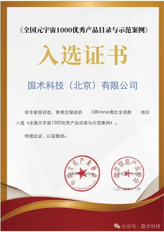 近日,中國文化產(chǎn)業(yè)協(xié)會、北京信息產(chǎn)業(yè)協(xié)會發(fā)布了《全國元宇宙1000優(yōu)秀產(chǎn)品目錄與示范案例》。經(jīng)專家組評審,國術(shù)科技報送的“OBVerse奧比全息艙”項目成功入選。