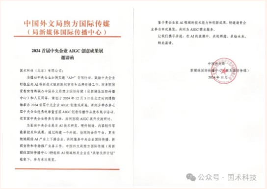 為面向中央企業(yè)展示AI技術(shù)研發(fā)、硬件制造、內(nèi)容創(chuàng)作等最新技術(shù)和成果,通過(guò)構(gòu)建一個(gè)開(kāi)放、協(xié)同的合作平臺(tái),更有效地聯(lián)結(jié)AI產(chǎn)業(yè)上下游企業(yè),共同服務(wù)中央企業(yè)國(guó)際傳播、新聞宣傳和市場(chǎng)推廣業(yè)務(wù)工作,中國(guó)外文局煦方國(guó)際傳媒(局新媒體國(guó)際傳播中心)特組織AI領(lǐng)域相關(guān)企業(yè)參與本次展覽。國(guó)術(shù)科技憑借在AI領(lǐng)域的技術(shù)能力和創(chuàng)新成果,受邀參與本次展覽。