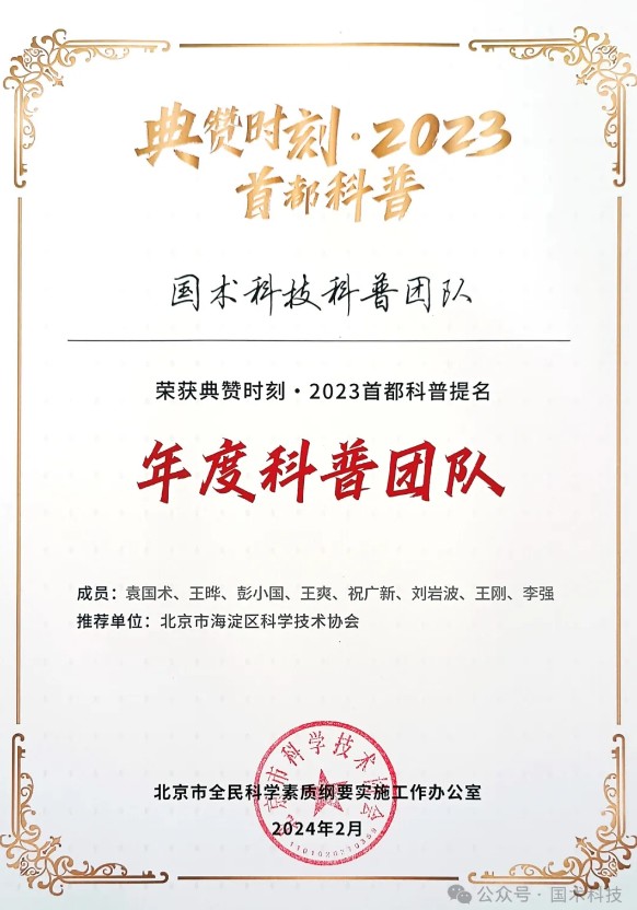 國術(shù)科技科普團(tuán)隊(duì)榮獲典贊時(shí)刻·2023首都科普提名“年度科普團(tuán)隊(duì)”。