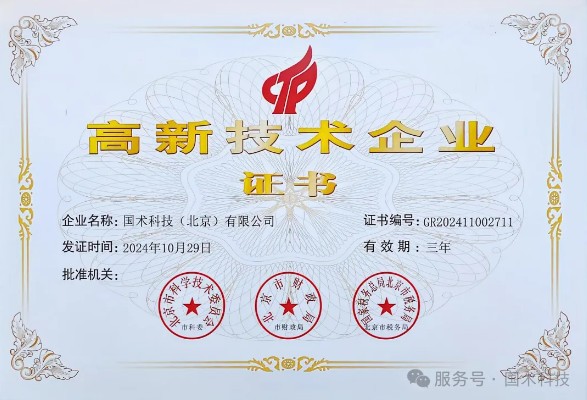 國術(shù)科技被北京市科學(xué)技術(shù)委員會(huì)、中關(guān)村科技園區(qū)管理委員會(huì)認(rèn)定為“2024年科技型中小企業(yè)”。