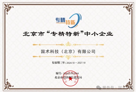 國術(shù)科技通過復(fù)審,被認(rèn)定為北京市“專精特新”中小企業(yè)。