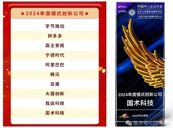 2025年1月27日晚,由中國(guó)中小企業(yè)協(xié)會(huì)指導(dǎo),上海東方娛樂(lè)傳媒集團(tuán)、北京大學(xué)國(guó)家發(fā)展研究院、《預(yù)見(jiàn)獨(dú)角獸》欄目組聯(lián)袂打造的中國(guó)首屆《科創(chuàng)春晚》與全國(guó)觀眾見(jiàn)面。本次春晚以“吹響科創(chuàng)的新號(hào)角”為主題,發(fā)布了“2024年度科創(chuàng)系列榮譽(yù)”名單(詳見(jiàn)文末)。國(guó)術(shù)科技憑借“積木式創(chuàng)新”模式榮獲“2024年度模式創(chuàng)新公司”獎(jiǎng)。