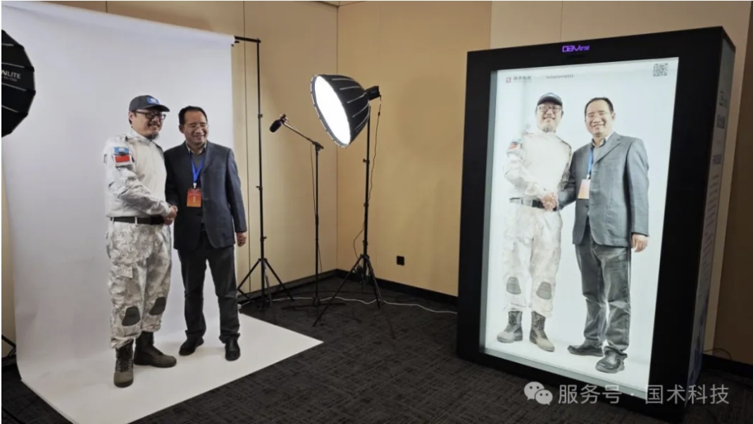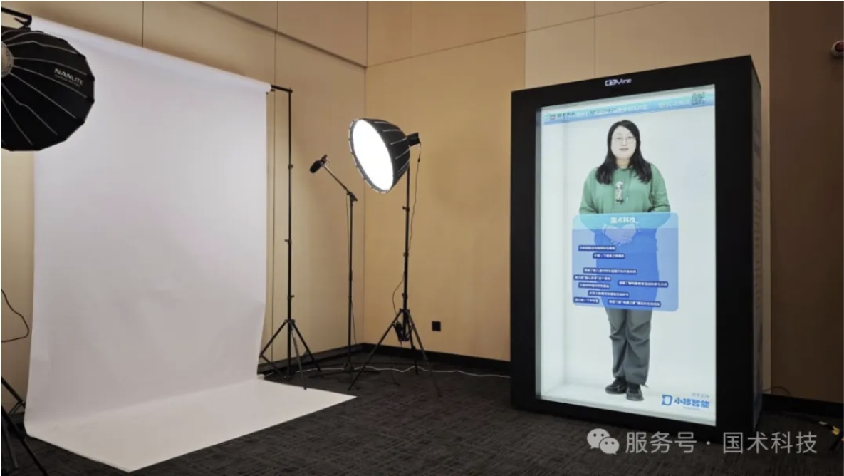 現(xiàn)場看到,以“OBVerse奧比全息艙”為載體,國術(shù)科技還展示了與戰(zhàn)略合作伙伴小哆智能共同研發(fā)的智能體數(shù)字人“小術(shù)”?!靶⌒g(shù)”智能體所搭載的2D真人數(shù)字人,是通過“OBVerse奧比全息艙”的高效復(fù)刻技術(shù)實現(xiàn)的,它融合了本地化部署與云端DeepSeek大模型協(xié)同能力,可實現(xiàn)實時互動問答,讓觀眾體驗到虛實交互的智能化躍遷。