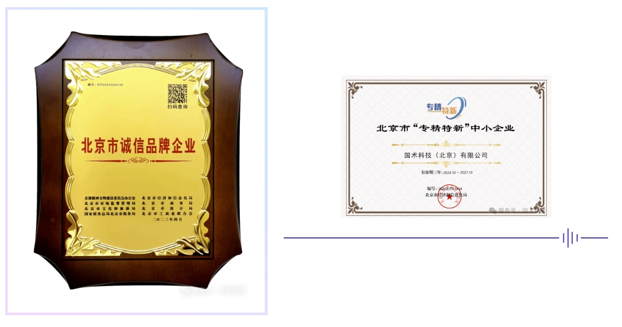 2021年,基于國術(shù)科技的專利產(chǎn)業(yè)化應(yīng)用成果,國術(shù)科技牽頭制定的《游戲用人工智能交互式投影設(shè)備》團體標(biāo)準(zhǔn)入選“中關(guān)村標(biāo)準(zhǔn)”,填補了國內(nèi)外該類產(chǎn)品標(biāo)準(zhǔn)的空白。2022年8月,“國術(shù)Eyeplay商用游戲機器人”獲得中關(guān)村標(biāo)準(zhǔn)“1字標(biāo)”產(chǎn)品認(rèn)證。2023年10月,該標(biāo)準(zhǔn)被評為“2023年全國工商聯(lián)商會團體標(biāo)準(zhǔn)‘領(lǐng)先者’”。2021年,國術(shù)科技被認(rèn)定為北京市“專精特新”中小企業(yè)。2023年,國術(shù)科技被首都文明辦等8部門聯(lián)合認(rèn)定為“北京市誠信品牌企業(yè)”。