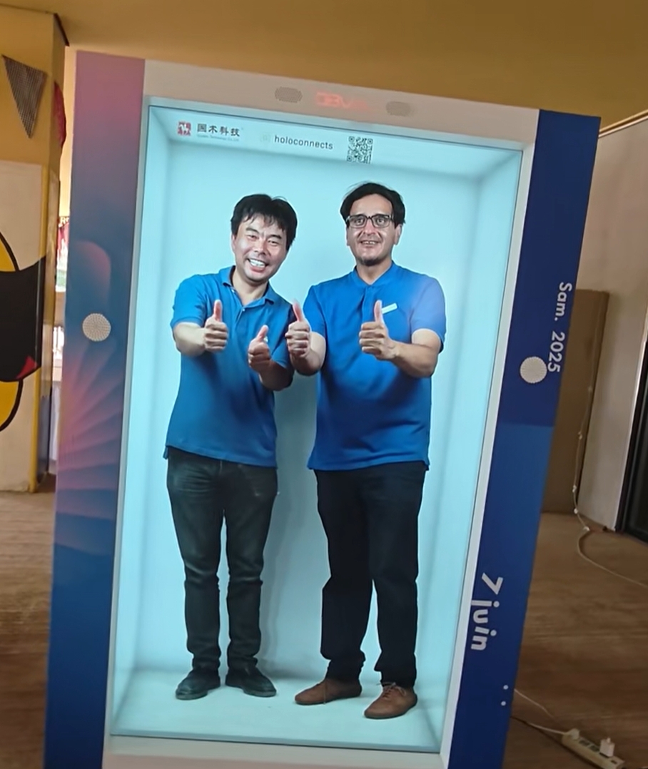 2.國術(shù)科技參加“2025科學(xué)城北區(qū)第三屆夏日嘉年華”活動,在D15生活美學(xué)館展示了“OBVerse奧比全息艙”和“賽未來商用教育游戲機(jī)器人”等產(chǎn)品。