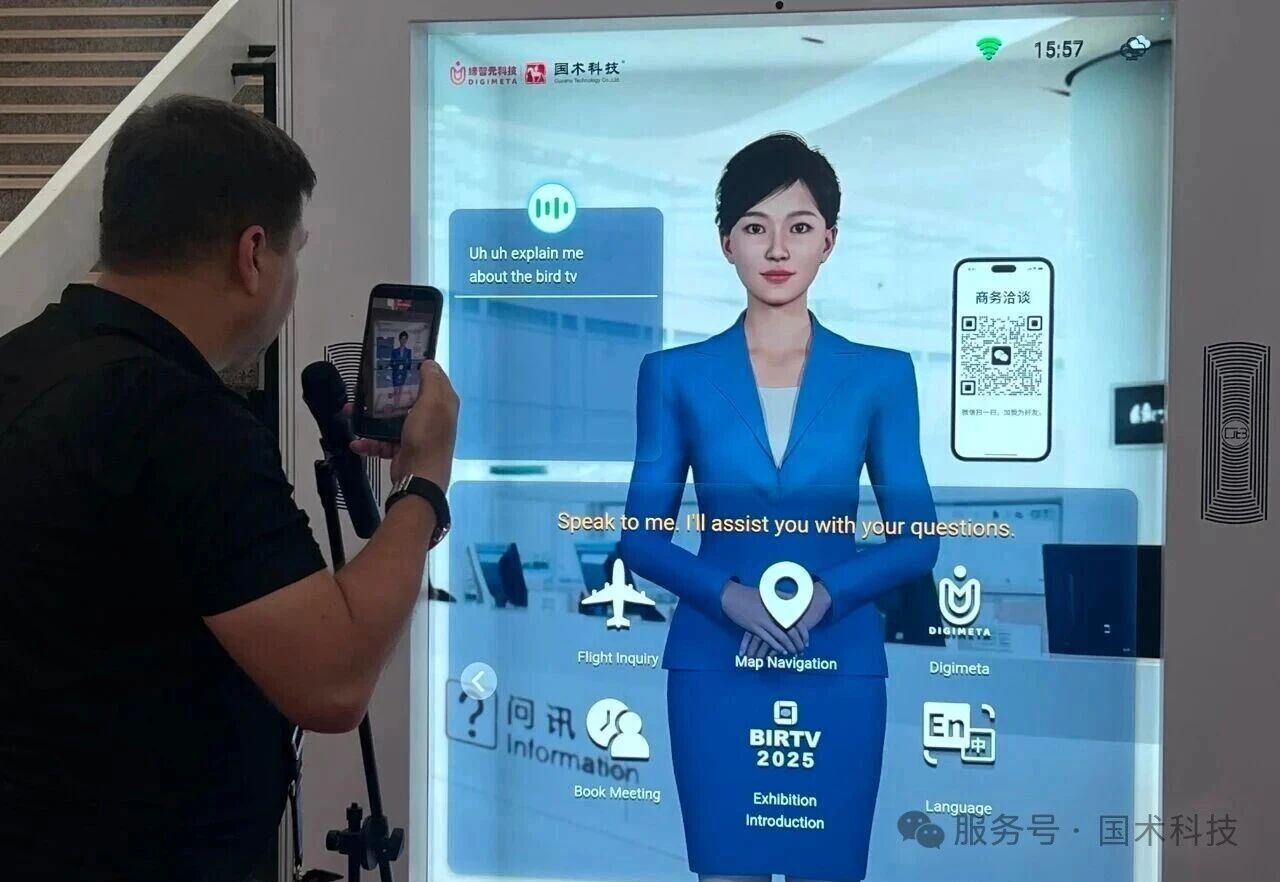 4.國術(shù)科技參加2025北京國際視聽大會,在視聽產(chǎn)業(yè)發(fā)展成果展區(qū)展示了“OBVerse奧比全息艙+復(fù)刻數(shù)字人”。
